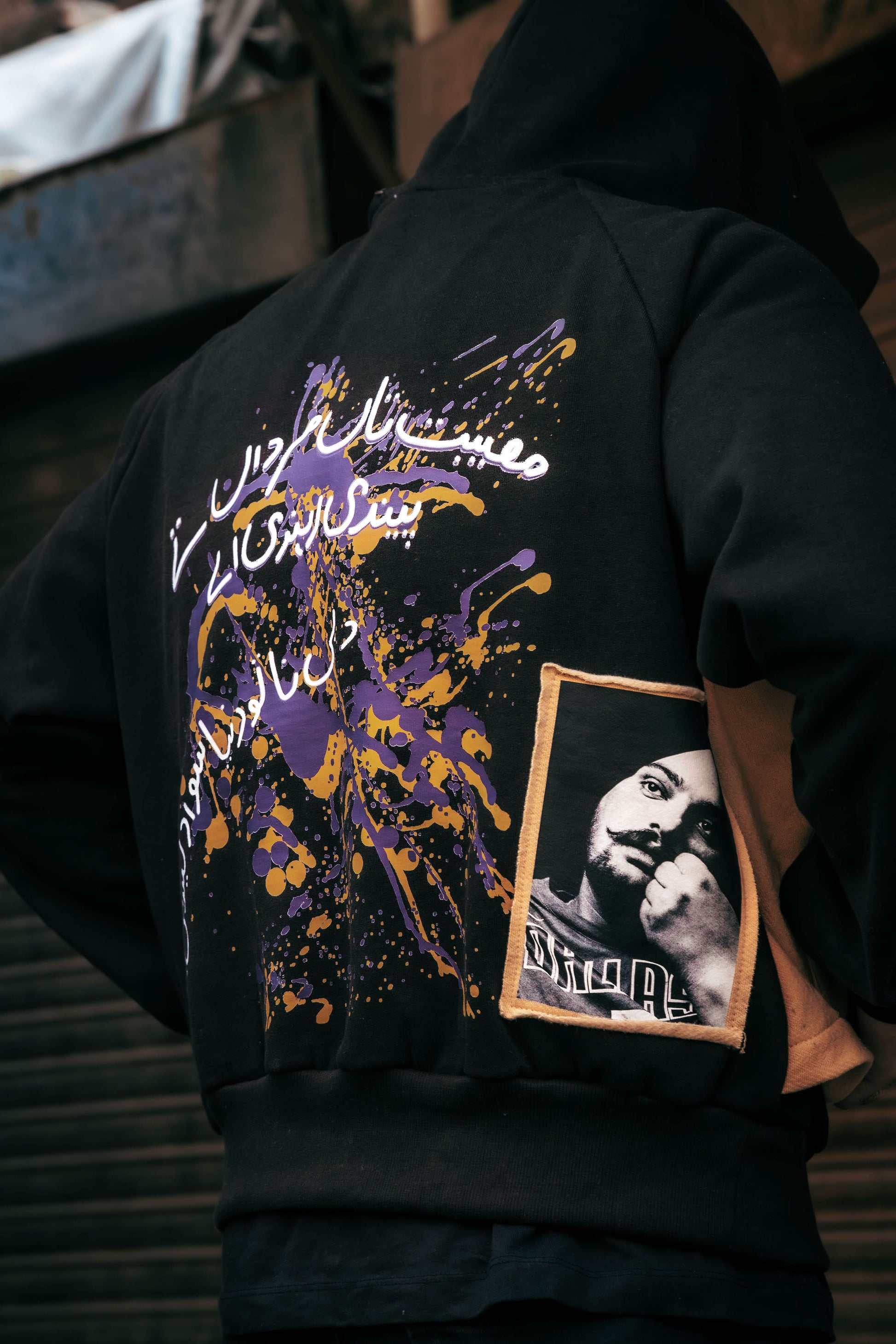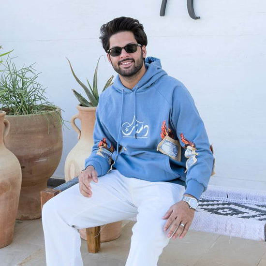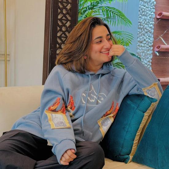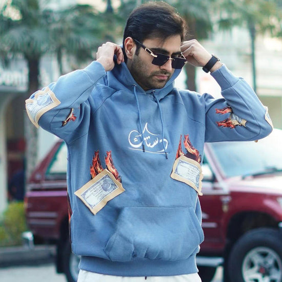 The Wirasat-e-Sidhu Hoodie by Dastaak represents the evolution of Streetwear, honouring the legacy of Sidhu Moosewala with a style rooted in cultural pride and authenticity. This heavyweight hoodie combines quality and comfort, made with 400 GSM, 100% cotton to withstand the test of time. The front features Dastaak’s Urdu logo, breaking down the brand’s name with intricate embroidery, while the contrast beige Jacket and pockets with fringe detailing bring Sidhu’s iconic style into the realm of modern urban fashion.The back design includes abstract color splashes and contrast embroidery, symbolizing Sidhu’s impact and journey in the music and fashion worlds. A tribute patch of Sidhu Moosewala’s portrait completes the hoodie, creating a fashion piece for Pakistani youth that celebrates heritage and street style.