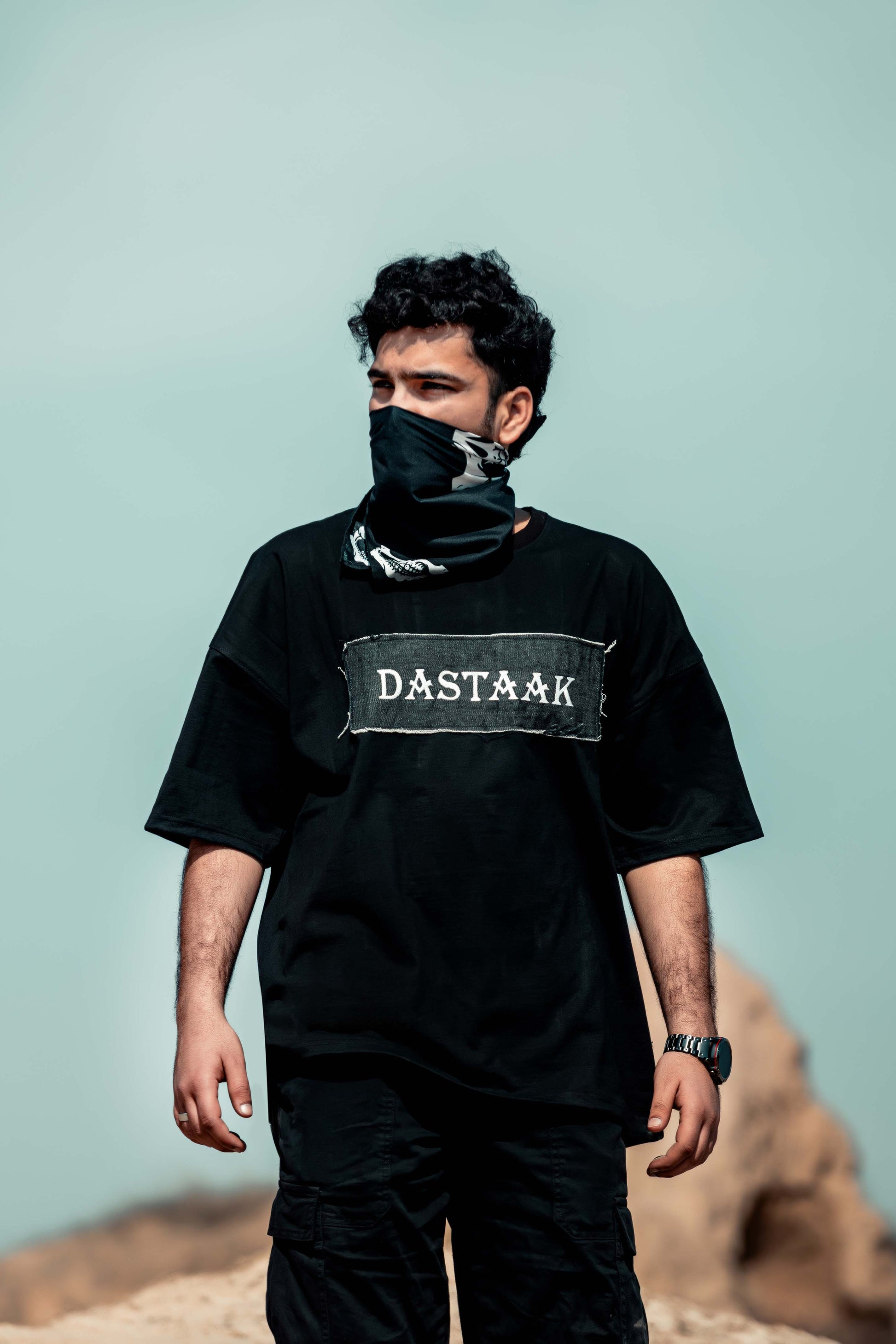 The "Syaah" Tee is a fusion of depth and texture. “Syaah” meaning black, represents the bold simplicity of this article. Crafted with a unique blend of soft cotton and rugged denim, the design is highlighted by the prominent Dastaak inscription on the front. The raw denim patch symbolizes authenticity, resilience, and the art of embracing imperfections.