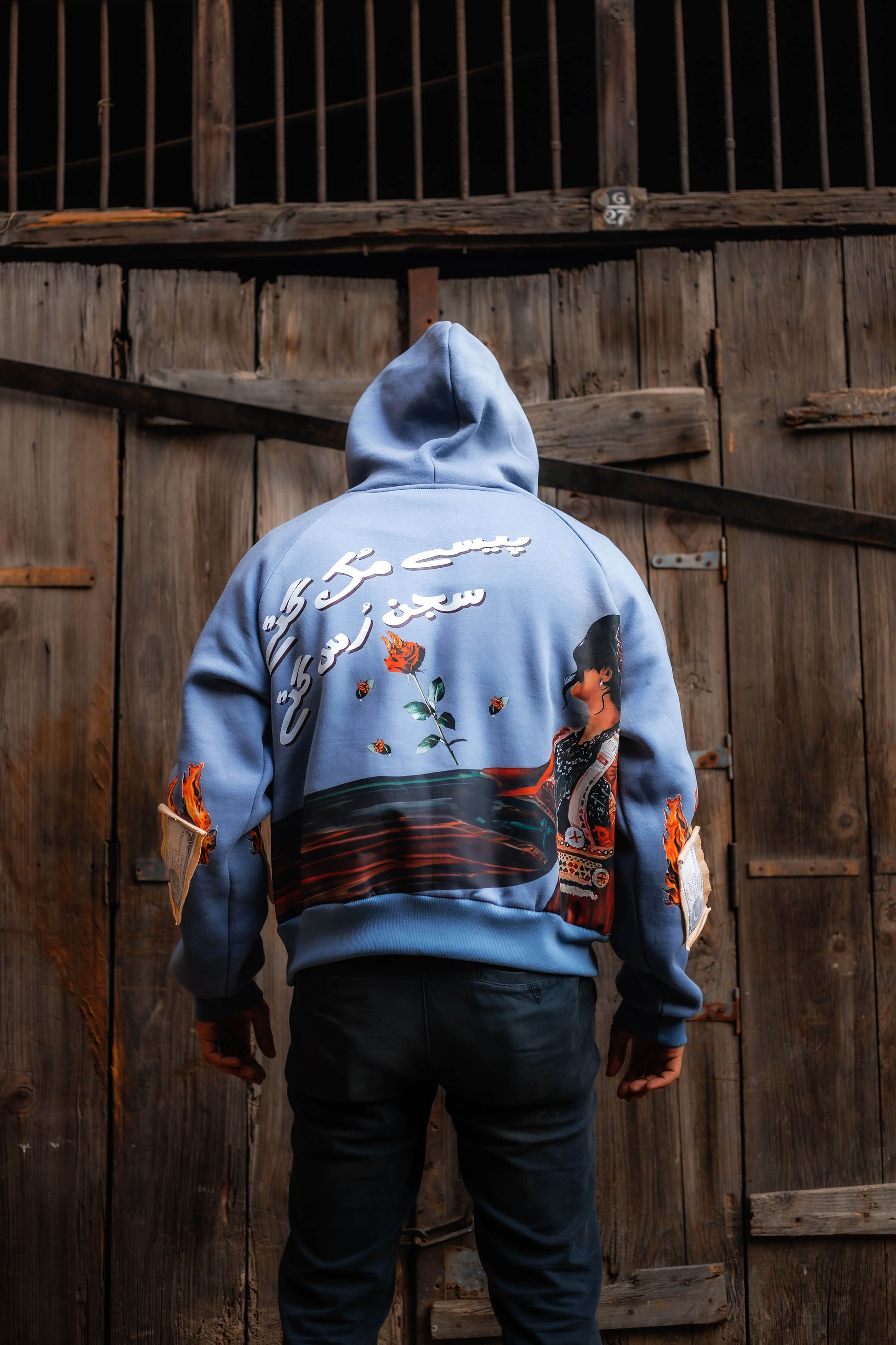 The Jaam e Talkhi Hoodie by Dastaak embodies the streetwear aesthetic of today’s generation, highlighting the complexities of modern love, where loyalty can fade when money runs out.